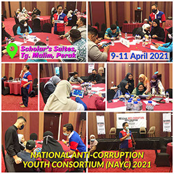National Anti-Corruption Youth Consortium (NAYC) di Scholar's Suites Tanjing Malim pada 9 hingga 11 April 2021.
