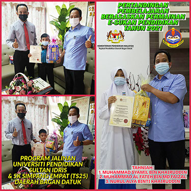 Pemenang E-Sukan Pendidikan Program Jalinan UPSI & PPD Bagan Datuk di SK Simpang Empat.
